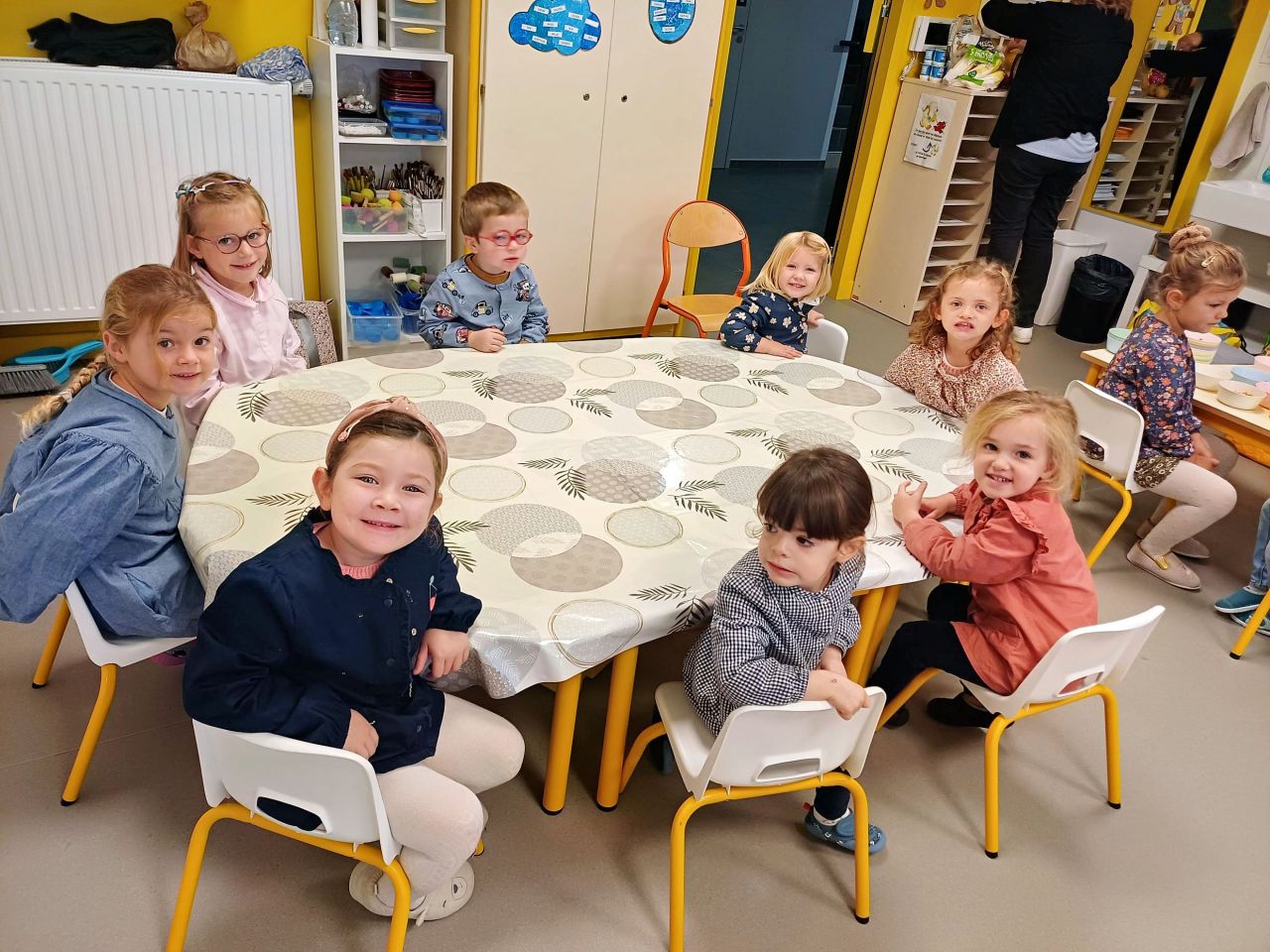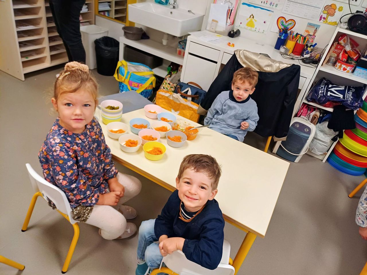 Et les enfants de Petite Section ont cuisiné des galettes aux pommes (avec de la compote faite maison).